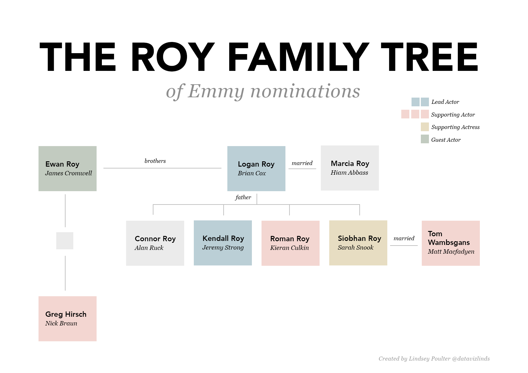 Lindsey Poulter On Twitter Succession Received 18 Emmy Nominations Today The Show Centers Around Family Rivalry So I Made A Family Tree Highlighting Who Is Competing Against Each Other For An Emmy